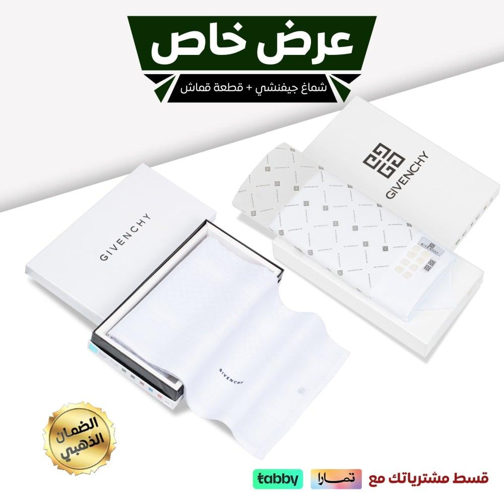 عرض حصري بكج شماغ جيفنشي أبيض كلاسيك 2024+قماش جيفنشي 2024