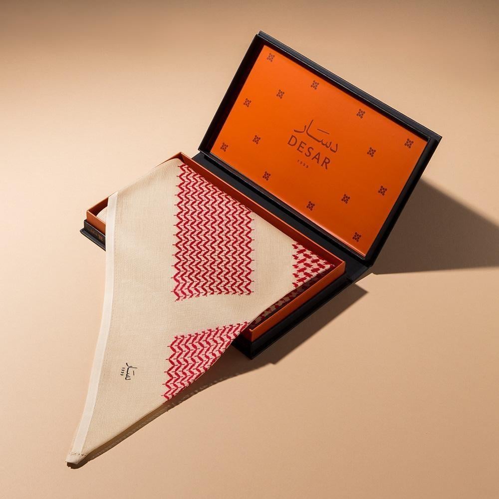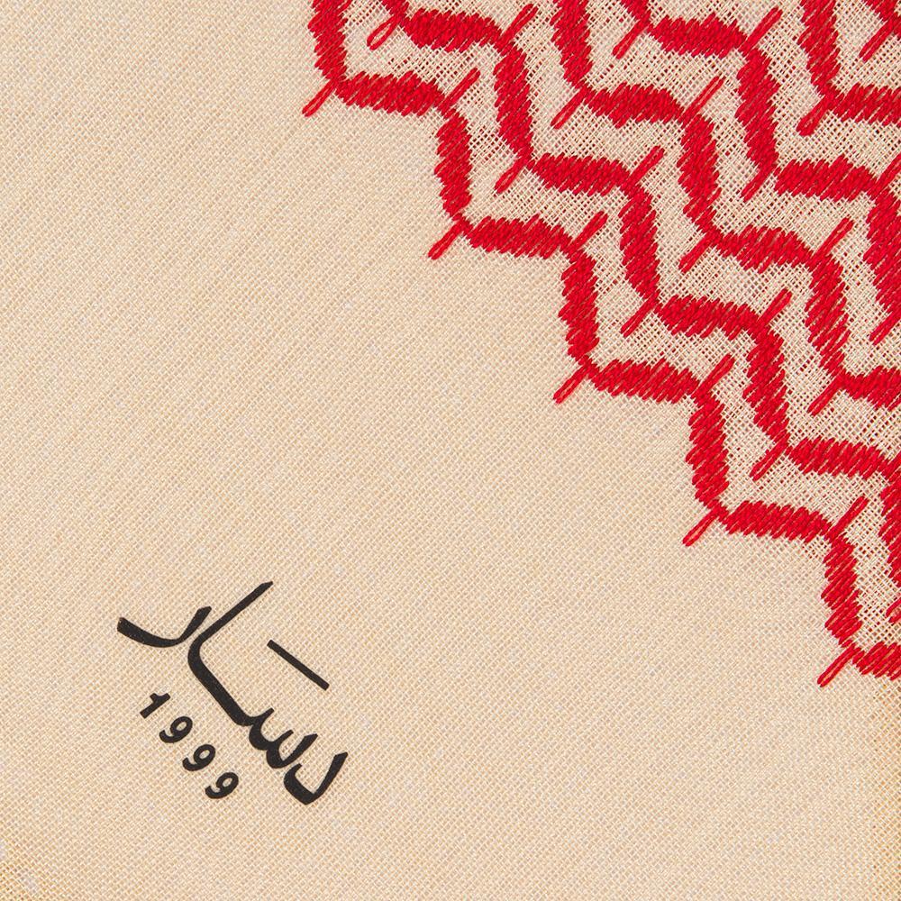 مصنوع من خيوط عالية الجودة باللونين الأحمر والبيج.