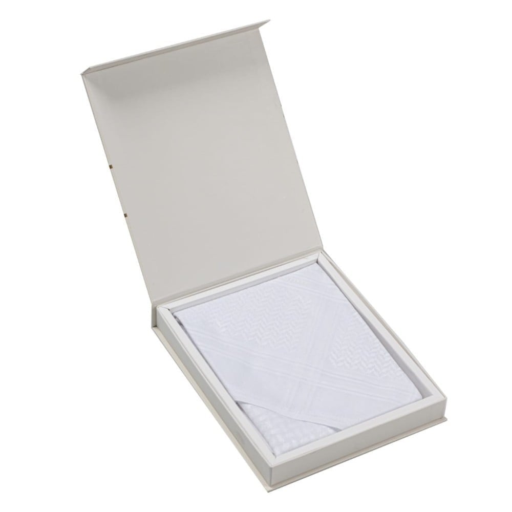 - شماغ رسمي يأتي باللون الابيض وبختم ابيض للماركة.