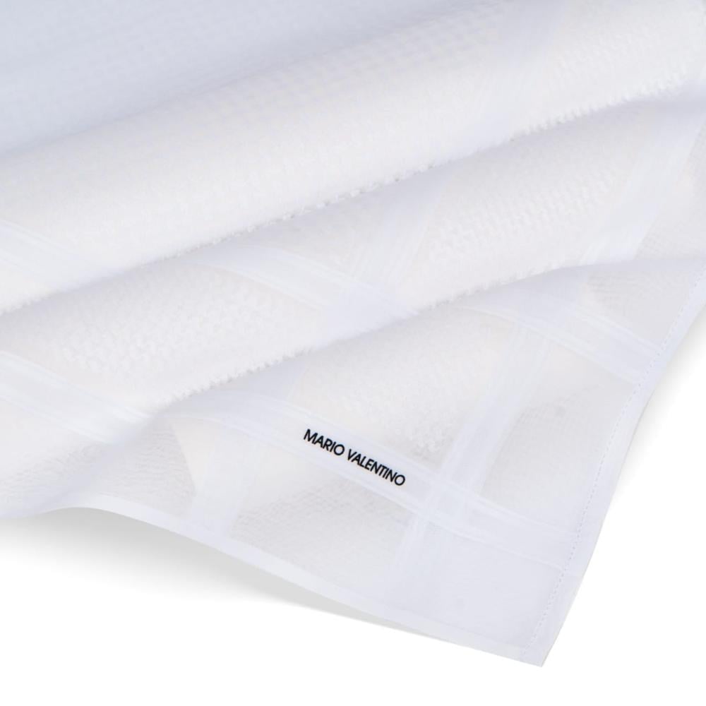 شماغ ماريو فالنتينو الأبيض كلياً والذي يأتي بخيوط من القطن الصافي والتي تم نسجها وحياكتها بالكامل في ايطاليا.